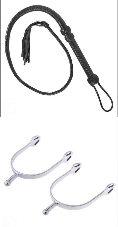 Dressage Equipment: Dressage bridles, training aids, whip and spurs.